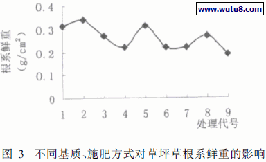 213 不同基质和施肥方式对草坪草根系鲜重的影响
