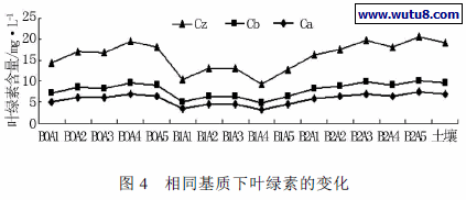 由图4 可知, 在营养液相同的条件下, 叶绿素含量差异不明显, 这是因为氮元素参与叶绿素的组成。基质A3 和A5 是5 种混合基质中, 最适合黄瓜生长的基质配比。