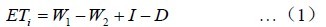 1)耗水量。花盆质量、每盆漏水量、花卉样株质量测试方法与参考文献[13]相同。耗水量以单盆花卉耗水质量计,运用水量平衡法确定阶段耗水量,见式(1)。