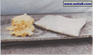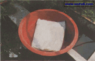 图6岩棉漂洗。将做好的岩棉垫,放入水中漂洗.除去碱性,要检测.需呈中性。