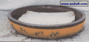 图5装岩棉垫。按盆底尺寸,用化纤布制成袋子,装入工业岩棉.铺平后封住。