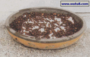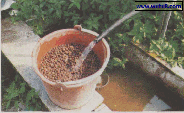 图8陶粒浸洗。将陶粒(中号)放入桶中用水冲洗去掉粉末.冲净备用。