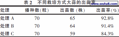 2.1 不同栽培方式对大蒜出苗的影响