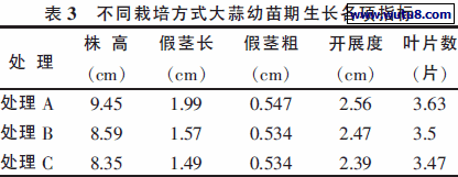2.2 不同栽培方式对大蒜幼苗期生长的影响