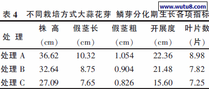 2.3 不同栽培方式对大蒜花芽鳞芽分化期的影响