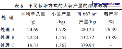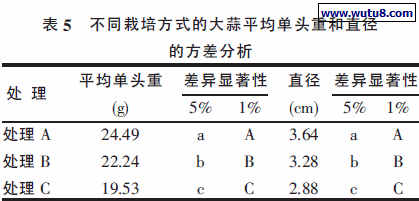 素有增产和改善品质的作用。收获的蒜头测量其重量和直径,统计结果见表5、表6。