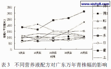 试验结果表明,对广东万年青生长的综合效果最好的营养液配方为调整配方2。