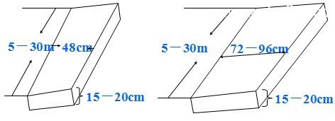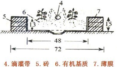 槽宽48cm,可铺设滴灌带1~2根,槽宽72~96cm,可设滴灌带2~4根。