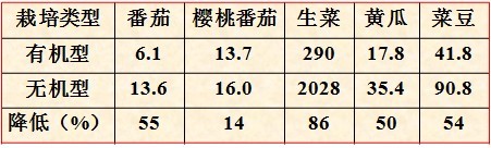 表7-3 传统无土栽培与有机栽培对蔬菜中硝酸盐含量的影响