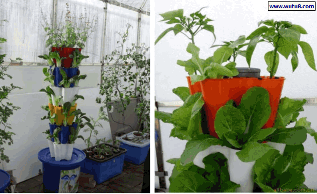 把简易的衣厨外衬帆布换成透光的薄膜就变成了阳台农业栽培的小温室,可以利用摆放衣物的层间隔栏作为立体式栽培植物的托架,把由一次性杯及塑料盒组成的简易无土蔬菜栽培单元,一个个整齐地往架上摆放,就形成了具有高利用率的立体式无土栽培架。