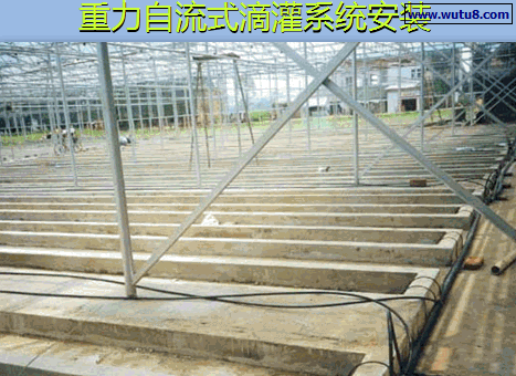 *近几年来,还有一种流量很小(0.2~0.5 L/h)的重力自流式滴灌系统,它通过供液支管在大棚或温室的种植槽四周互相连通,形成一个闭环系统,以使各处的压力尽量均匀,然后把已连接有滴头的毛滴管两端与供液支管相连并平铺在种植槽的基质面上。
