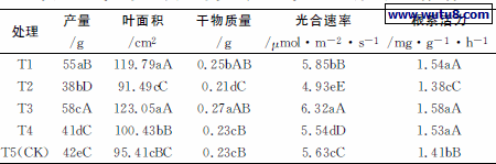 试验结果数据的采集是在播后50d进行的,结果数据为每个试验处理的10株平均值。干物质量采用70℃烘干测定法;光合速率采用改良半叶法测定;叶面积的测定采用美国产CI-203手持激光叶面积仪测定;根系活力测定采用TTC法;硝酸盐含量测定采用水杨酸法;维生素C含量测定采用2,6-二氯酚靛酚滴定法。