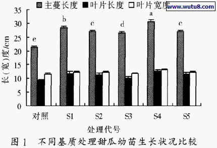 2.2 不同基质处理对甜瓜幼苗生长的影响
