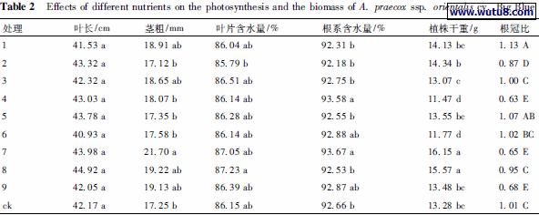 表2 不同营养液对百子莲形态指标及生物量的影响