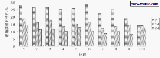 图1 不同营养液对百子莲膜相对透性影响的变化状况
