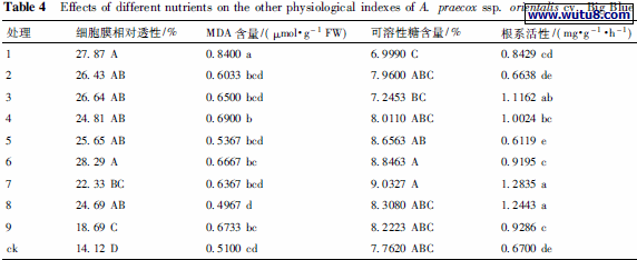 2. 3 不同营养液配方对百子莲其他生理指标的影响
