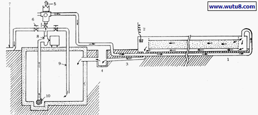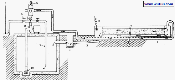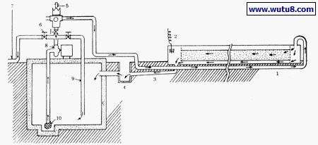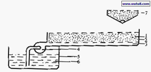 1.石砾层 2.排液缓冲间 3.供液缓冲间 4.灌排管 5.供液管 6.回流管 7.贮液池