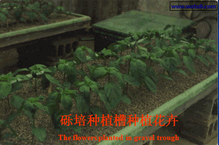 *由水泵抽起的营养液通过供液管道流到种植槽的供液缓冲间中,然后在石砾下层的石砾间孔隙沿种植槽从高至低流动,当流到排液缓冲间时则从排液口流出,经排液管道流到贮液池中,如果此时槽中的营养液较多,从排液口流出的量较少时,营养液液位就会在石砾层中上升,当升至离石砾层表面大约3~5 cm处,则会通过设在排液缓冲间的溢出口流到排液管中再流回贮液池中。