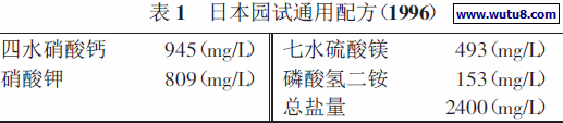 2.4 营养液供给与管理:营养液选用的是日本园试通用配方(详见表1),使用时以其1/2 剂量为宜。
