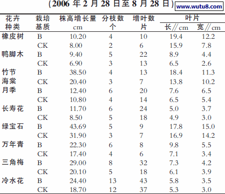 2.2 B 基质栽培与土壤栽培的花卉生长发育对比