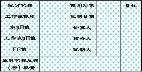 根据配方中各营养元素的浓度比例,分别计算出各种药品的用量,再换算成每吨水或每10吨水各种药品的实际需要量。